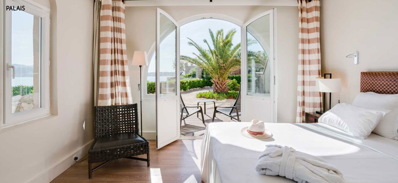 Camera doppia al piano con balcone e vista mare al Delos o camera doppia/twin al Palais con terrazza sul giardino e vista mare